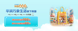 华润万象生活旗下商圈满2000元减166元,满300元随机减26-66元